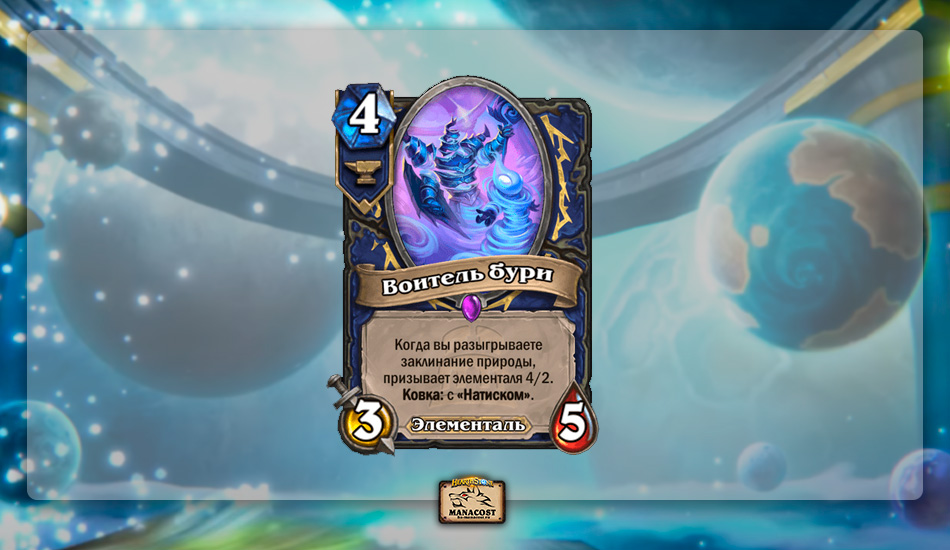 Темп Шаману на природе даст Воитель бури. В истории игры была уже целая куча карт, которыми можно было заспамить стол подобным образом, и Воитель бури выглядит, как одна из сильнейших среди них. Карта сама по себе обладает не худшими характеристиками, так еще и ее токены просто огромные для этой стоимости.