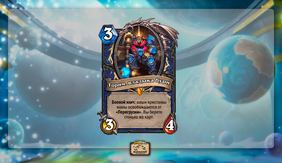 Если какая-то колода Шамана будет активно использовать перегрузку, Торим точно должен в ней оказаться. Вполне возможно, что он будет даже ценнее, чем Инза, который сам по себе мало что делает в момент выхода.