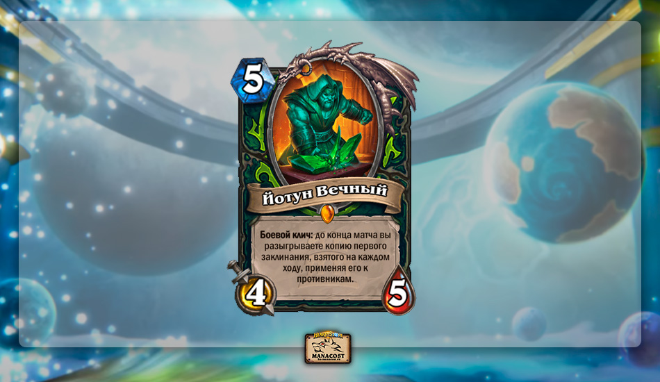 Похоже, Релик Охотник на демонов станет еще страшнее, чем был раньше. Эффект Йотуна Вечного действительно внушительный. Карта не просто дает вам бесплатное заклинание практически каждый ход, так еще и не отбирает у вас ничего. Наверное, она бы выглядела слишком балансно, если бы разыгрывала само заклинание, а не создавала его копию (хотя это неплохая идея для нерфа, если что-то пойдет не так).