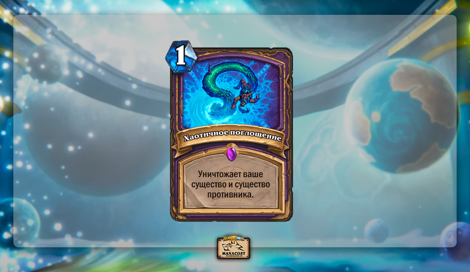 Хаотичный каннибализм — очень дешевый ремувал, который не только позволяет Чернокнижнику не играть пассивно, не зачищая вообще весь стол, но и помогает различным комбо колодам. С помощью карты можно активировать, например, Бесформенную слизь или нового Прожорливого кракена, если колоды с ним появятся.