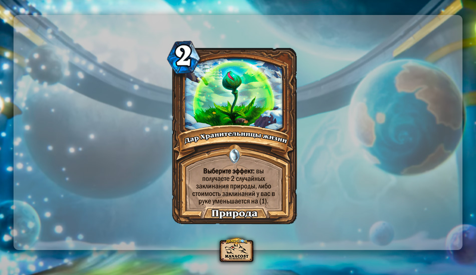 Интересно, что в дополнении появилось сразу несколько карт, которые позволяют использовать сразу оба эффекта карт с выбором. Если Дар Хранительницы жизни использовать именно так, он станет очень похож на Гадание по руке — одну из сильнейших карт Жреца в истории игры.