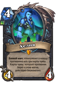 Весь набор чумы Рыцаря смерти выглядит интересно. Вопросы возникают только тогда, когда речь заходит о рунах, которые используют эти карты. Главной является руна Нечестивости, а как известно, подобные колоды не славятся ни сильными зачистками, ни уроном из руки. Вместе с тем карты на чуме дают ДК и немного АоЕ (Предатель из склепа), и неизбежность в лейтгейме (Хелия), и самое главное — мощный рывок в темпе.