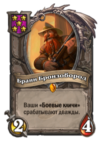 Чаще всего герой получает Бранна Бронзоборода на 1-2 тирах, хотя с плохим заходом боевых кличей можно взять и тир-3. В любом случае старайтесь взять тир-3 хотя бы к ходу с 8 монетами — дольше с этим лучше не затягивать.