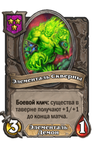 Среди боевых кличей 1-3 уровней редко попадется что-то такое, что можно оставить на столе в мид- и лейтгейме. Исключение — наличие в лобби зверей и Рилака-металлиста. Если он есть в игре и пусть даже еще не на столе, можно дольше держать на столе Элементаля Скверны, Ночного джазиста и Коллекционера раковин.
