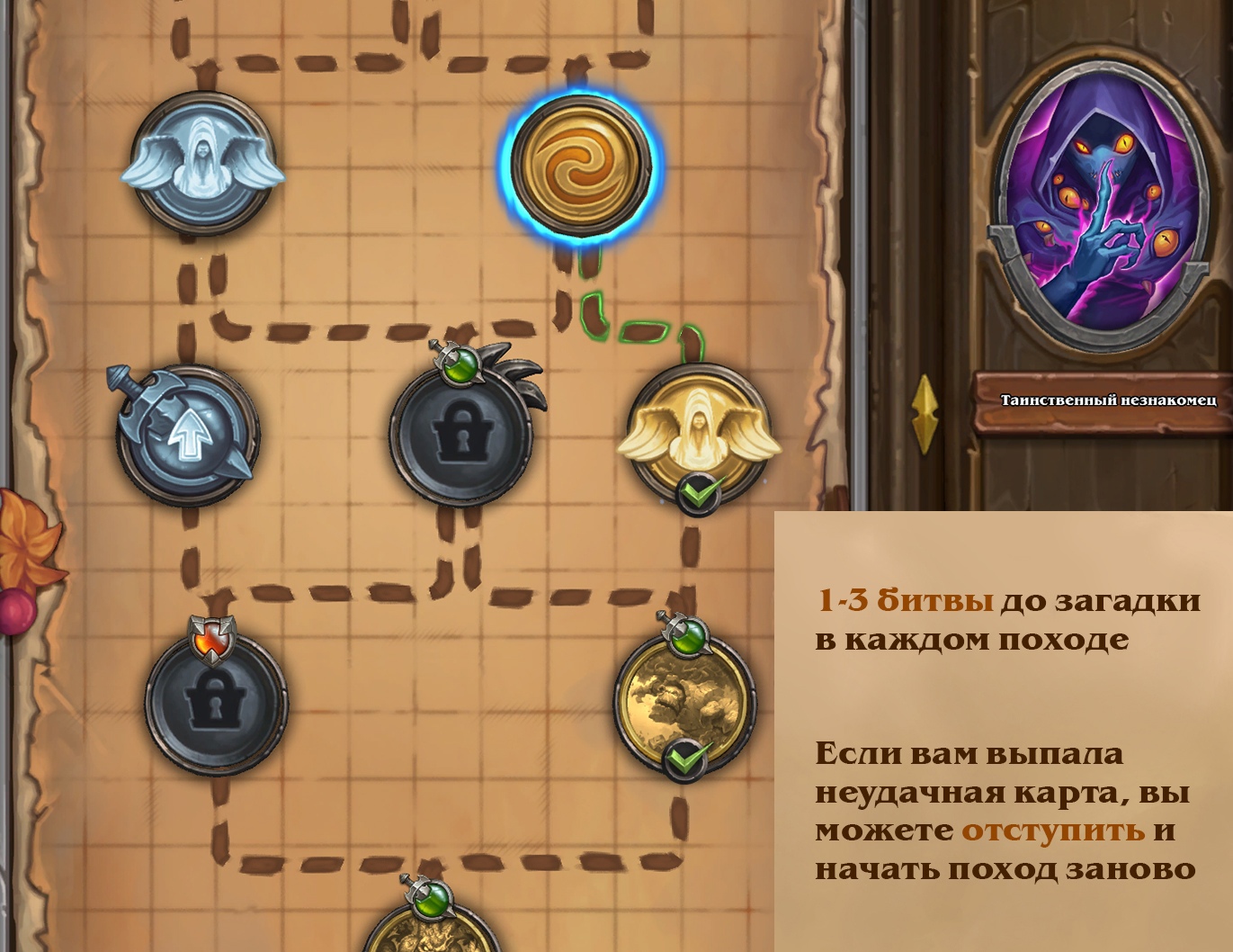 Повторяйте 2-й и 3-й шаги до тех пор, пока не найдете короткий путь к Загадке (1, 2 или хотя бы 3 битвы).