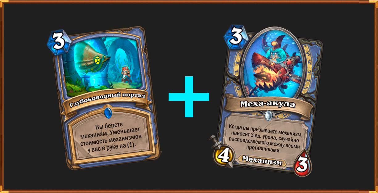 - Меха-акула — оставляйте всегда с Монеткой или с Глубоководным порталом. Во многих матч-апах можно оставить и самостоятельно без этих карт. Вторую копию почти всегда стоит сбрасывать.
