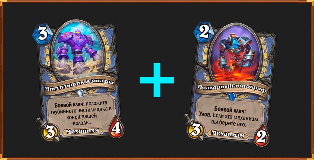 Комбинация сработает, если сыграть карты именно в таком порядке, что получается не всегда. Если ваш единственный второй ход — Подводный топограф, играйте его до Чистильщика Азшары и доставайте со дна колоды другой механизм. Жертвовать темпом ради этой комбинации не нужно.
