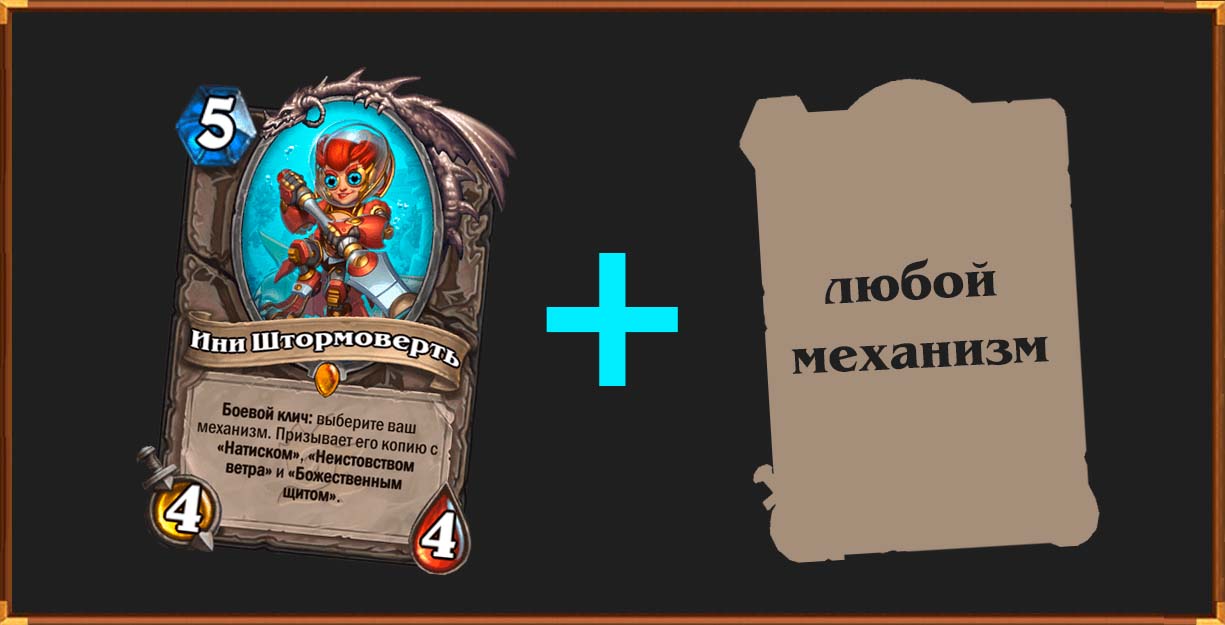 Целью для боевого клича может стать любой механизм: даже копии вторых дропов принесут Магу много пользы и темпа. Чтобы реализовать эту комбинацию, желательно находиться впереди по темпу, хотя можно сыграть Ини и на только что поставленного меха. Сам этот мех не атакует, а вот его копия разменяется с 1-2 угрозами противника.