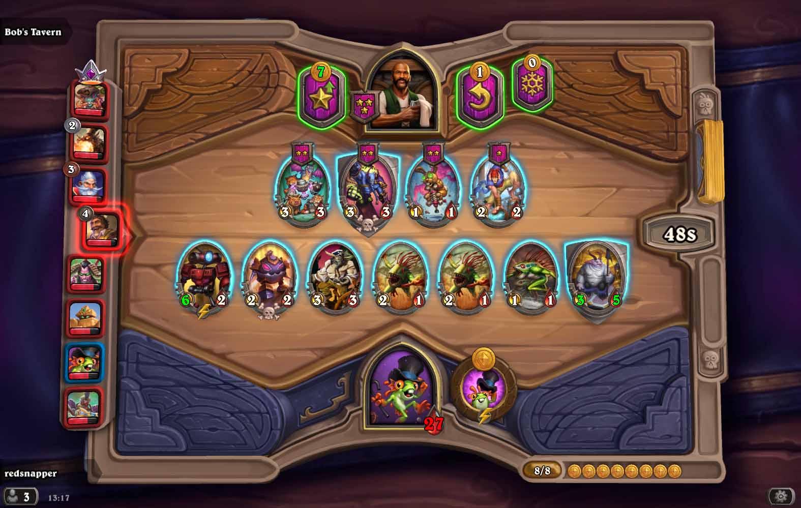 Минусы: критически важно получить двух существ в ход с 5 монетами или улучшить таверну до тир-3.