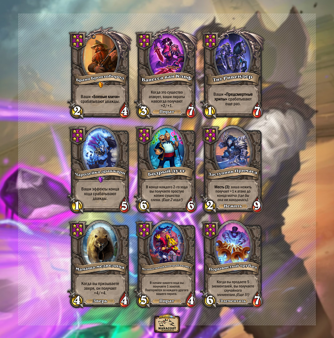Цели для силы героя Рено Джексона есть на всех уровнях таверны. Далее о том, каких существ Рено Джексон чаще всего делает золотыми на каждом уровне таверны и как это меняет геймплей.