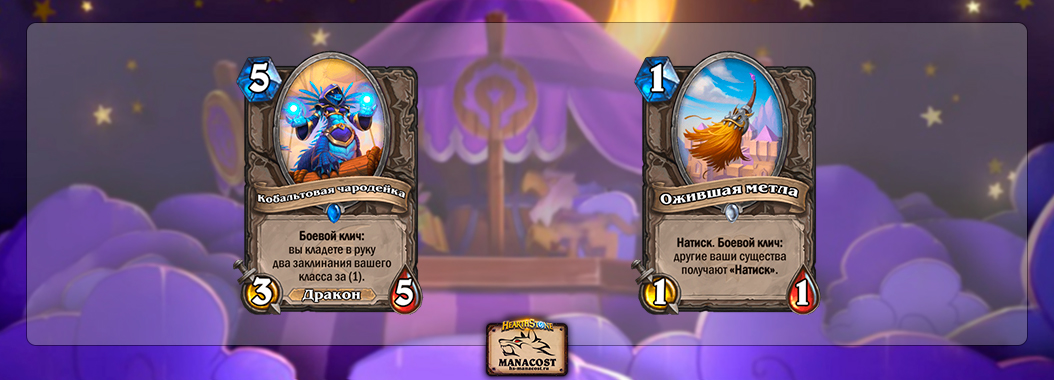Кобальтовая чародейка – отличный способ получить пару секретов и продолжить давление. Также дополнительное усиление Чародейке даёт Укротитель драконов, который достанет эту карту из колоды в нужный момент.