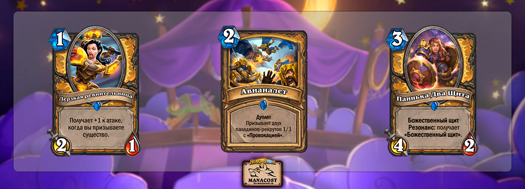 Есть ещё множество способов подстроить эту колоду под различные архетипы Паладина. Можно переделать колоду под Чистого Паладина, добавив Дерзкую ревнительницу и Авианалет. Паинька Два Щита и Обстрелобот тоже будут хорошими заменами благодаря синергии с На старт! и тому, что от них довольно сложно избавиться. Паинька Два Щита также получает возможность срабатывания резонанса с дешевыми секретами Паладина. Колоду также можно разнообразить Манускриптами. Может, вы не захотите добавлять Манускрипт надежды и Манускрипт правосудия в колоду, но Манускрипт Мудрости и Манускрипт справедливости могут добавить в колоду контроля стола, да и не стоит забывать про Алдора-служительницу, сильную карту за 1 ману, которой обычно нет в этой сборке. Загадочный клинок почти попал в эту сборку, но уступил свое место другим картам за 2 маны, которые давали больше эффекта и могли воскреснуть с помощью На старт!.