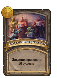 Вы увидите две случайные расы в требованиях к этому квесту: они всегда будут доступны в вашем лобби. Квест часто сделать очень сложно, особенно если разыграть нужно 8+ существ. В таких ситуациях мы рекомендуем не брать его вне зависимости от силы награды, потому что вы будете на 100% зависеть от захода существ в таверну Боба.