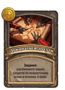 Брать этот квест можно, если требуется разыграть 4-6 существ, а в идеале, чтобы среди них были элемы — тут очень помогут Продажементали, Обновляющие аномалии и т.д. Хорошо брать это задание и стратегиям мурлоков, если в требовании есть розыгрыш этого типа существ.