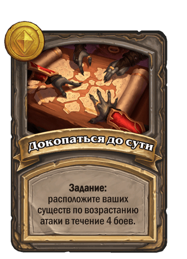 Предсказуемый квест. Вы будете точно знать, к какому ходу закончите его, потому что всё в ваших руках. Удобно агрессивно брать уровни таверны в ходы с 6, 8 и 9 монетами: так в конце хода как раз останется 1 золотая монета. Можно действовать и иначе, исходя из особенностей вашего героя и стола.