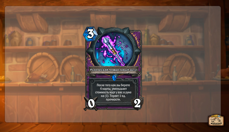 Пока что сложно разделить Квест Чернокнижника и Рунический мифриловый жезл. Они появились одновременно и пока что используются вместе. Но Рунический мифриловый жезл вполне может заиграть в будущем и с другими картами и синергиями вне квест колод.