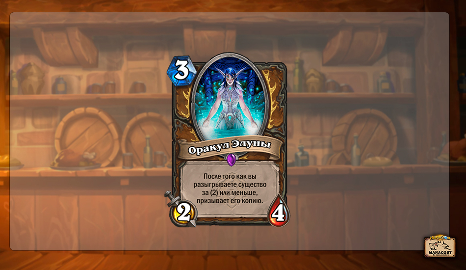 Этот третий дроп уже создал целых два новых архетипа класса — Агро Токен Друида и Таунт Друида с Серокроном. Пусть колоды пока что не так популярны, но у них еще будут шансы раскрыть свой потенциал в будущем. Оракул Элуны — ключевая карта в сборках класса. Если она заходит в руку вовремя, винрейт Токен и Таунт Друидов существенно растет.