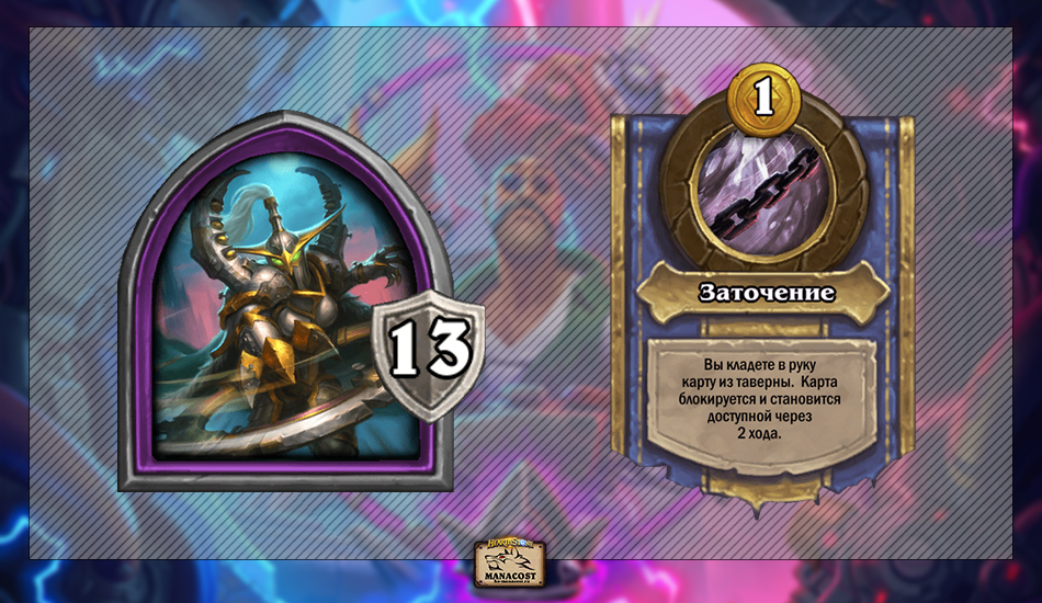 Силу героя Майев можно использовать на любые карты — как на существ, так и на Заклинания таверны. При розыгрыше вы получите эту карту в руку, но использовать ее сможете только через 2 хода. Пока карта заблокирована в руке, ее нельзя сыграть, из нее нельзя собрать триплет. Если это существо, единственное, что с ним можно делать — баффать особыми эффектами мурлоков.
