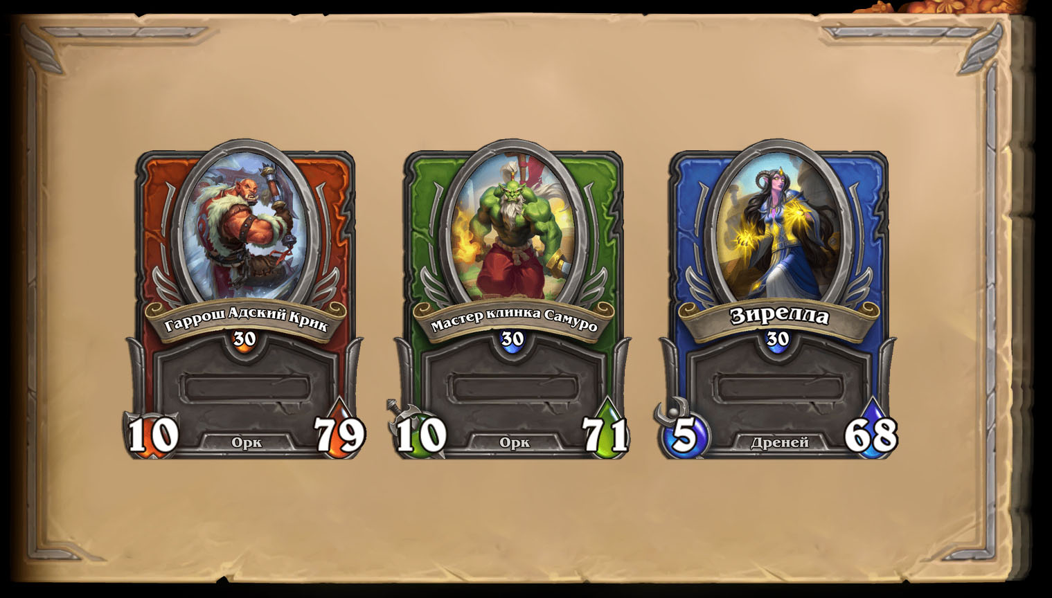 Со старта орки обращаются к комбинации Мастер клинка Самуро + Зирелла, но с получением Тралла, Саурфанга, Кэрна Кровавое Копыто и Гул’дана от них можно отказаться.