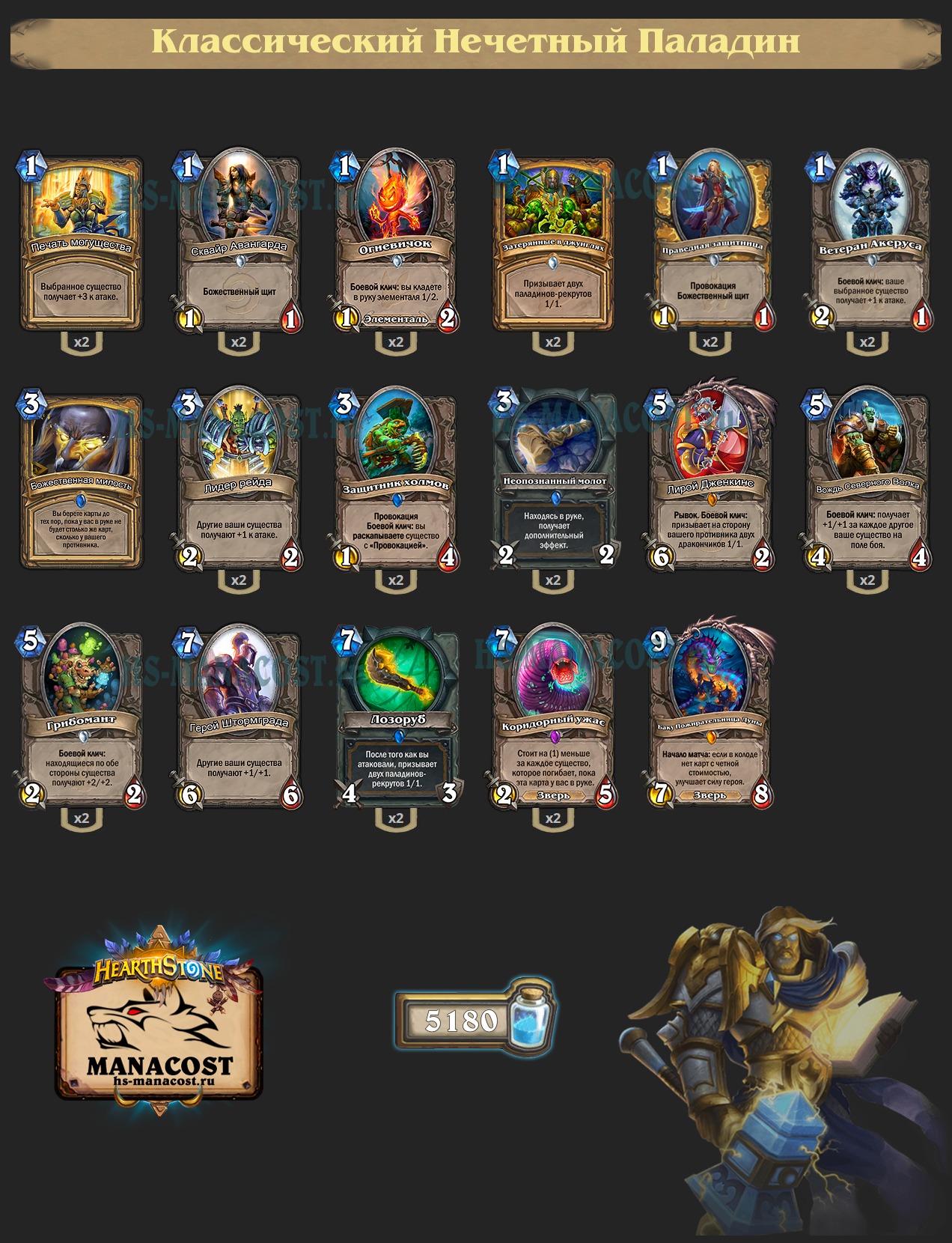 Самая популярная версия Нечетного Паладина после нерфов с одной копией Божественной милости и Героя Штормграда. Сборка похожа на самую популярную версию до нерфов, но вместо Нового уровня! здесь Вождь Северного Волка.