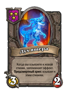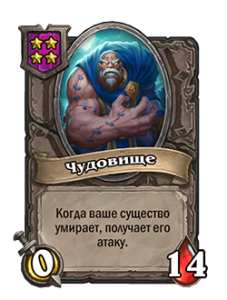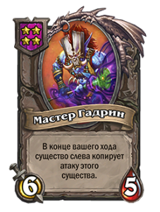 - После: «Боевой клич: призывает случайное существо со стоимостью 0. (Улучшается за каждую другую карту ШРУ, разыгранную вами в течение матча.)»