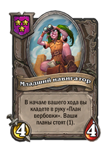 - После: [3-й уровень таверны] В начале вашего хода вы кладете в руку «План вербовки». Ваши планы стоят (1).