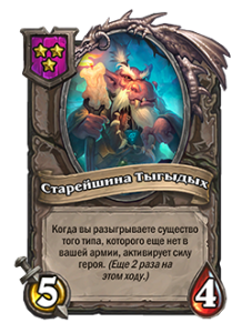 - После: [3-й уровень таверны] 5/4. Когда вы разыгрываете существо того типа, которого еще нет в вашей армии, активирует силу героя. (Еще 2 раза на этом ходу.)