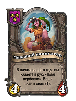 - После: [3-й уровень таверны] В начале вашего хода вы кладете в руку «План вербовки». Ваши планы стоят (1).