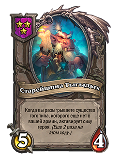 - После: [3-й уровень таверны] 5/4. Когда вы разыгрываете существо того типа, которого еще нет в вашей армии, активирует силу героя. (Еще 2 раза на этом ходу.)