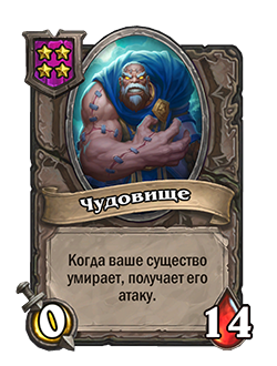 - После: «Боевой клич: призывает случайное существо со стоимостью 0. (Улучшается за каждую другую карту ШРУ, разыгранную вами в течение матча.)»