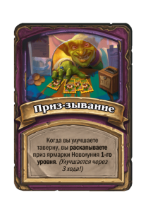 • После: Боевой клич: существа в таверне получают +2/+1 до конца матча.