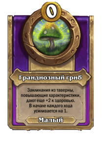 • После: Заклинания из таверны, повышающие характеристики, дают еще +2 к здоровью. В начале каждого хода усиливается на 1.