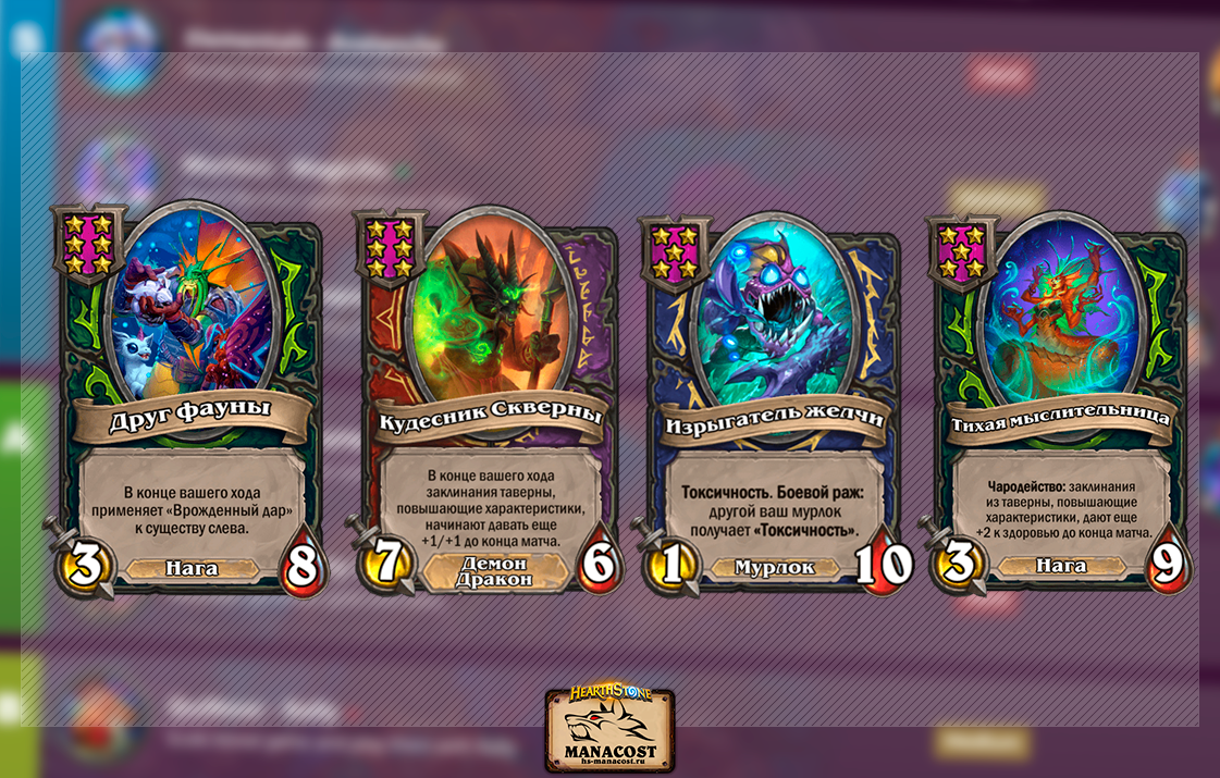- Друг Фауны — можно оставить на столе, если есть свободное место и вы играете через бафы заклинаниями таверны.