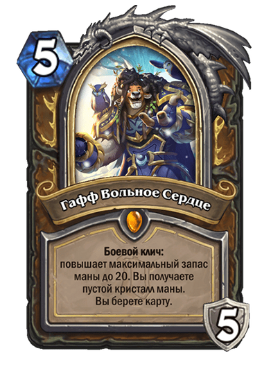 - Гафф Вольное Сердце — Является одной из лучших карт на муллигане еще со времен своего появления в Hearthstone, и по сей день это так.