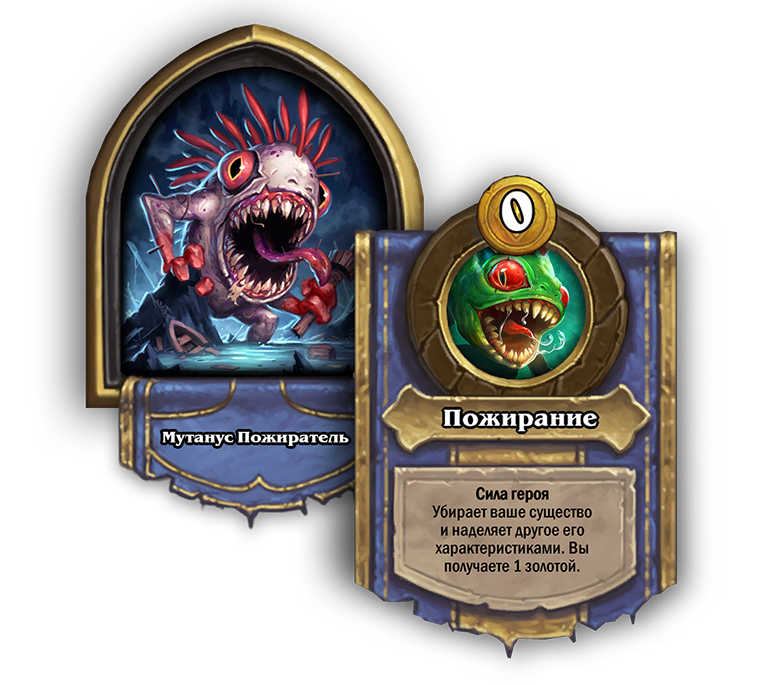 Каждый раз, как Мутанус Пожиратель хочет что-то продать, вместо этого он может использовать силу героя ради дополнительных характеристик. Не обязательно, чтобы характеристики продаваемого существа были огромными.