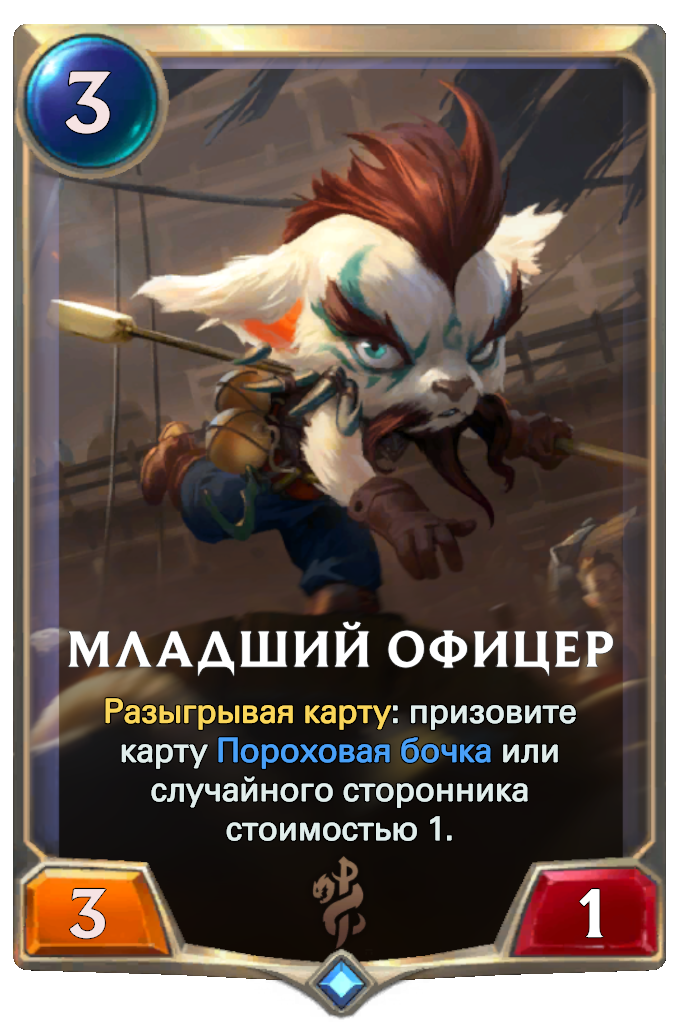 Мы отменяем сделанное несколько месяцев назад изменение, поскольку сейчас характеристики Младшего офицера чересчур хороши с учетом его общей полезности. Этот боец оказался слишком мощным как в агрессивных, так и в контролирующих билджвотерских колодах, поэтому мы немного урезали его ценность, оставив при этом универсальным бойцом.