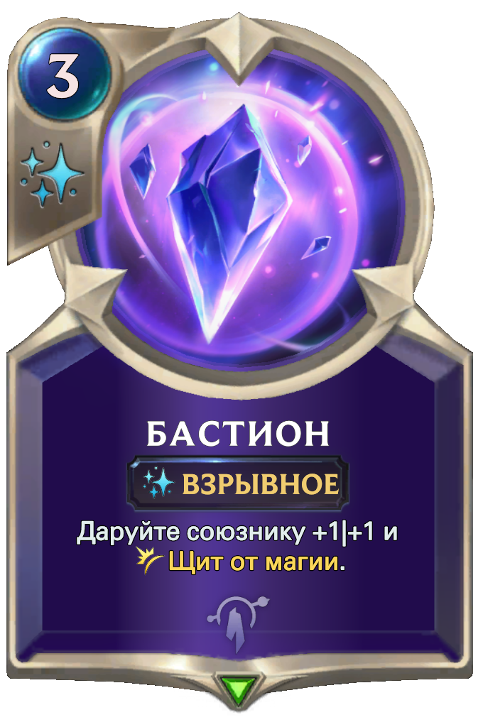 БАСТИОН — СТАРОЕ ОПИСАНИЕ: Дайте союзнику Щит от магии до конца раунда. НОВОЕ ОПИСАНИЕ: Даруйте союзнику +1|+1 и Щит от магии.