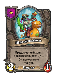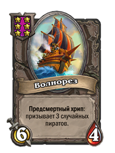 - Предсмертный хрип: призывает пирата 1/1. Он немедленно атакует.