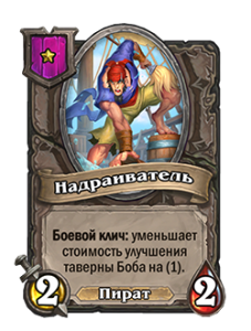 - Боевой клич: уменьшает стоимость улучшения таверны Боба на (1).