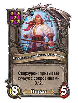 Примечание: Сундук, который призывает Нат Пэгл — существо 0/2 с предсмертным хрипом: призывает случайное золотое существо. В золотой версии — призывает 2 золотых существа.