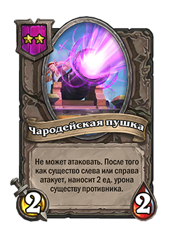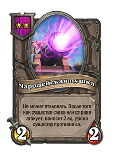 - Не может атаковать. После того как существо слева или справа атакует, наносит 2 ед. урона существу противника.