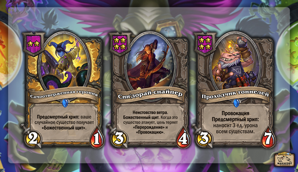 Часто на столы с божественными щитами можно взять Вечную призывательницу — синергии с Драконом-киборгом тут нет, но эта тир-6 угроза хороша сама по себе, если заходит рано.