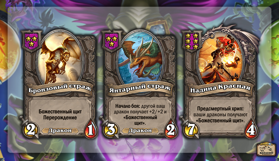 Любой дракон может получить божественный щит с помощью Янтарного стража или Надины Красной. Такие столы отлично работают с Драконом-киборгом, хотя собираются они достаточно редко.