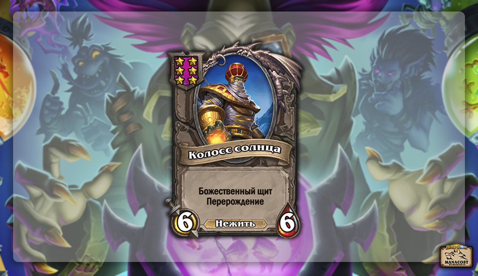 Есть одно существо-нежить с божественным щитом — Колосс солнца. Это топовый юнит для синергии с Драконом-киборгом, потому что у Колосса солнца всегда будет 2 божественных щита, да и стартовые характеристики у юнита высокие.