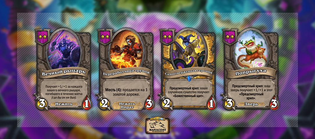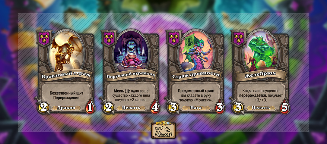 На 3 уровне не так много хороших целей для силы героя. Здорово рано найти Стража древности и фармить с него по две Монетки за ход. Много темпа даст Бронзовый страж, а вокруг Пирующего вурдалака можно собирать сильные мидгейм композиции — силу героя используйте не на него.