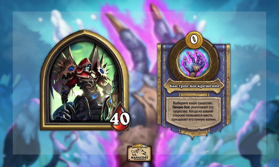 Бесплатную силу героя Терона можно использовать каждый ход на любое союзное существо, выставленное на стол. В начале следующего боя сила героя уничтожит выбранное существо, а значит активирует его предсмертный хрип и перерождение. Когда на столе появится свободный слот, уничтоженное силой героя в начале боя существо появится снова — со всеми своими баффами (характеристики, божественные щиты, перерождение и т.д.).