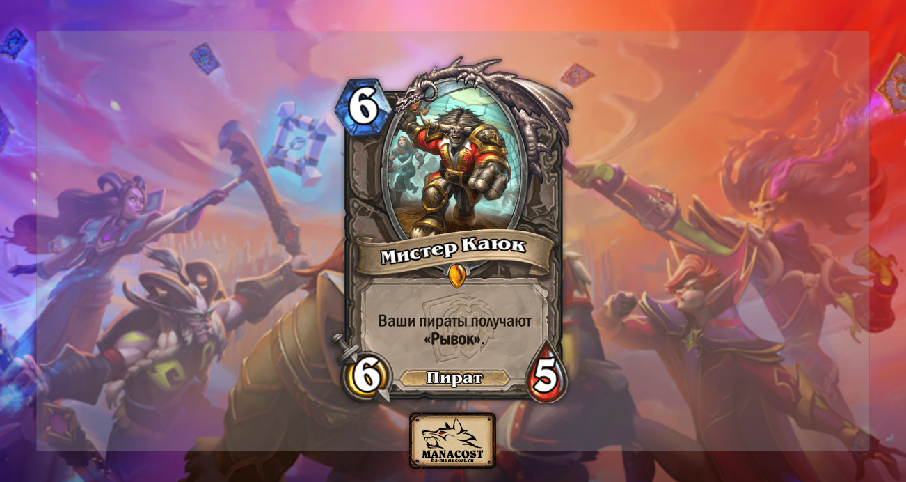 Как изменить Мистера Каюка — сложный вопрос. Как вариант, он может давать рывок только другим пиратам, но не самому себе. Можно поднять стоимость карты, хотя проблему Целестиал Друида это не решит, как и неприятную ситуацию, когда Линкор Квест Воина призывает Мистера Каюка.