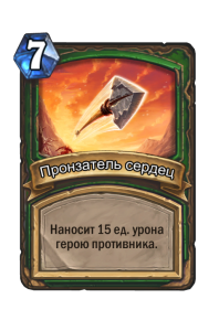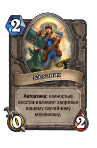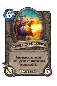 Данный босс имеет в своем распоряжении 5 видов пушек, а также по две копии Механика, заклинания Бомбометание и “Товсь, цельсь, пли!”. Для прохождения стоит запастись картами с немотой и натиском для быстрой зачистки пушек оппонента. Отлично себя покажет в зачистке стола и Мшистое чудище, которое справляется практически со всеми существами босса. Добавив несколько подобных технических карт в любую темпо колоду, вы без труда справитесь с противником.