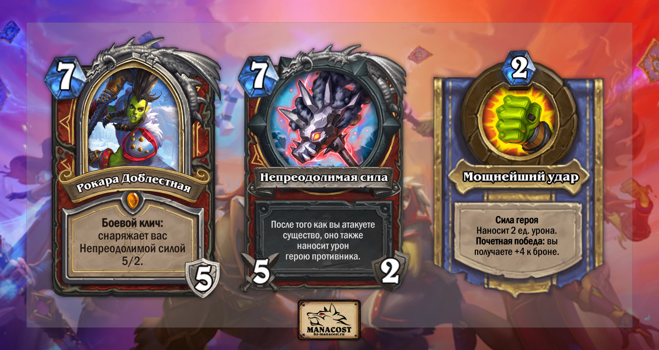Если вы размениваете героем большое существо и предполагаете, что противник больше пострадает от урона этого существа, чем вы, значит вы — контроль колода. Но если противник играет биг колодой, скорее всего, у вас будет и так достаточно ресурсов с ней справиться, и зачем вообще наносить ей какой-то урон? Если же вы играете против более быстрого противника, то в игре есть масса намного более полезных ремувалов и источников брони, чем Рокара Доблестная.