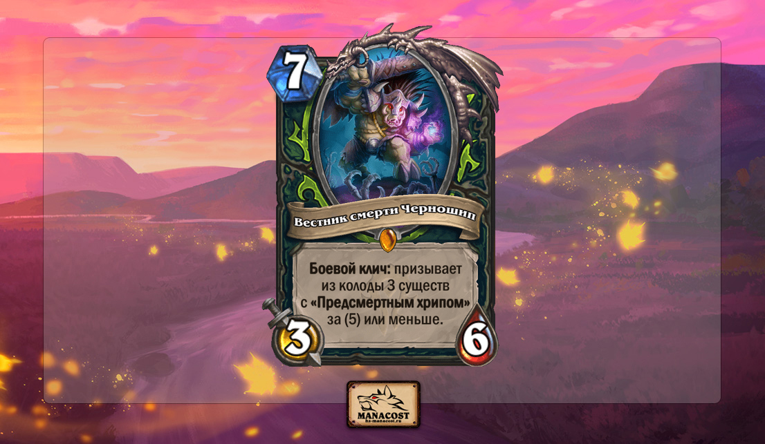 Вестник смерти Черношип попал в список самых многообещающих карт Закаленных Степями. Карта спорная, не потому что слабая или сильная, а потому что выпущена в начале года по летоисчислению Hearthstone. В Стандарте ей существовать еще 2 года. И за это время разработчики не смогут выпустить сильные предсмертные хрипы ни среди нейтральных существ, ни среди существ Охотника на демонов, не усилив класс. А если они появятся, Вестник смерти Черношип станет слишком сильным, и играть против Охотника на демонов будет неприятно.